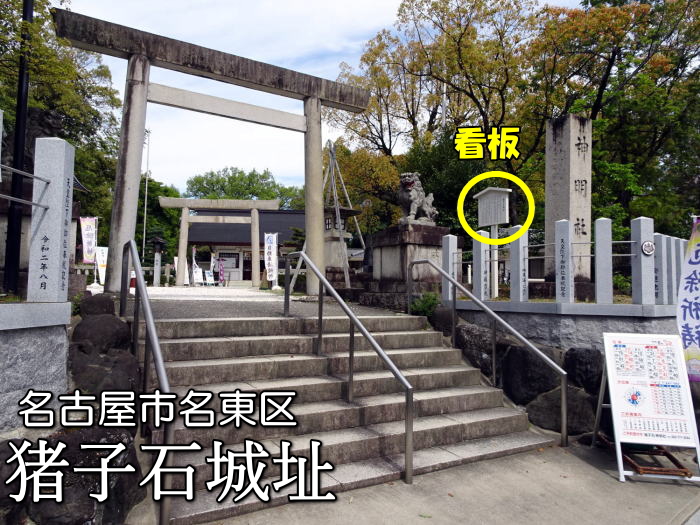 名古屋市名東区の猪子石(いのこし)城址は、この地の土豪・横地主水正秀次(よこちもんどのしょうひでつぐ)の居城跡です。横地氏は遠江国横地城(現在の静岡県菊川市)から移ってきた一族で小牧長久手の戦いでは徳川方として戦いました。