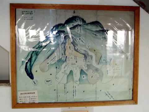 中には展示物がチラホラあり、よく見ると貴重な展示もあります。例えば江戸時代のものと思われる大野城の絵図とか。大野城だけではなく周辺の村も記載されています。