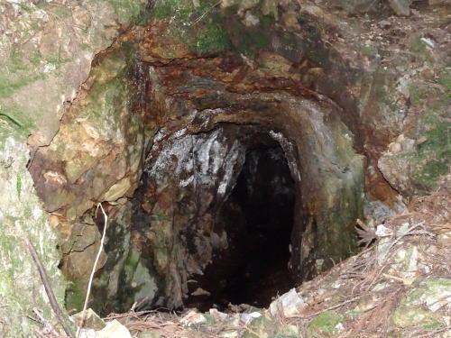 ここにある坑道はそのひとつで、長さは約140mほどあり、途中で枝分かれしています。また採掘された鉱石は、この山のふもとにある古町で精錬され、当時使用した金摺石(かなすりいし)が今でも残っているそうな。ちなみに古文書によると、武田氏の勢力が三河から去ると、織田信長続いて徳川家康が津具金山を採掘した事が記録に残されています。
