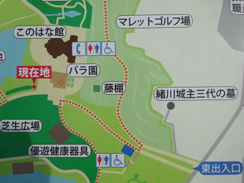 まず行き方ですが、於大公園の中にある【このはな館】に行きます。すると東側の森の中に水野氏三代の墓所があります。車で行く場合は於大公園の無料駐車場が利用できます。カーナビで行く時は、於大公園と検索すると出てくると思います。また場所的には東浦町役場のすぐ西側にある公園です。
