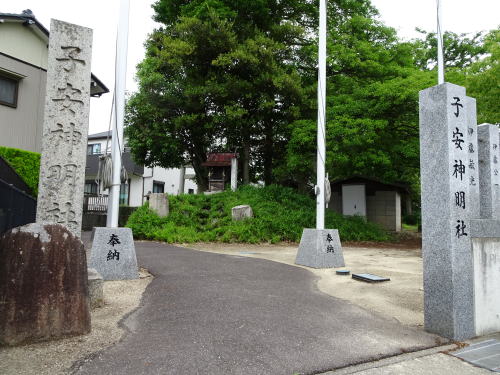 春日井市大留6町目にある子安神明社は、戦国時代の小牧・長久手の戦いで羽柴軍の池田恒興に味方した村瀬作右衛門の居城跡です。