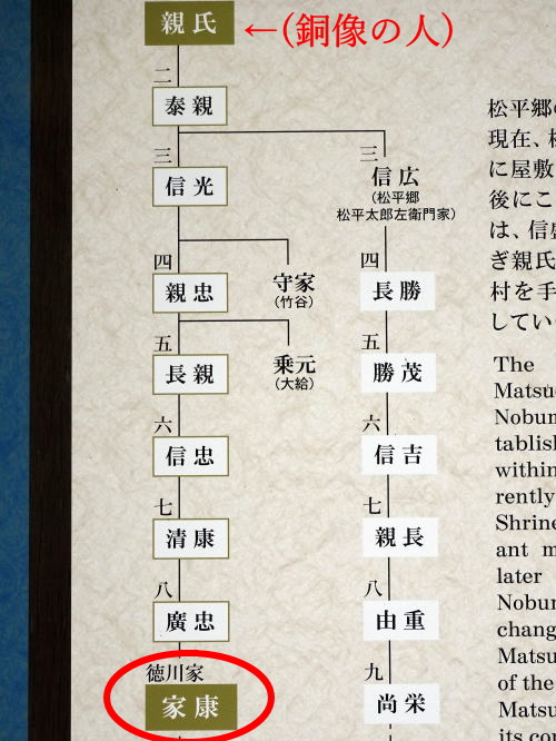 系図を見るとこの様な関係。ここで注意したいのは、松平氏の宗家(本家)は二代・泰親までは松平郷を拠点としていた太郎左衛門家だったのに三代目・信光の時に宗家が変わっているということです。