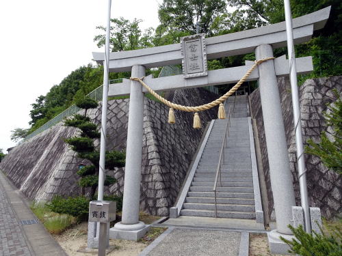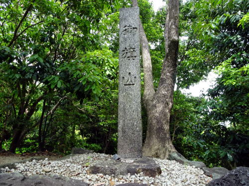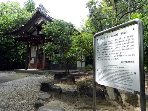 御旗山はそんなに高くない小山で麓からすぐに頂上に着きます。頂上は削平地で社(やしろ)と案内看板が建っています。