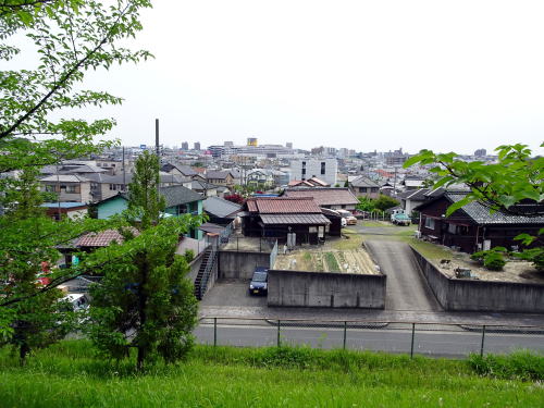 中腹からの景色。遠くまで見えます。この見晴らしの良さと高い場所にあるという防御性から、家康はこの御旗山に陣を置いたのでしょう。
