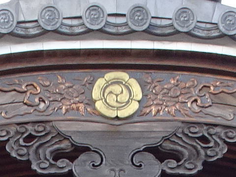 神社ですから神紋を決める時、久野家ゆかりの五簡の瓜左みつ巴と呼ばれる、5つの瓜の中に左三つ巴が印されているものと決まり、今日まで四百年以上、熊野神社の社紋として使用されてきました。