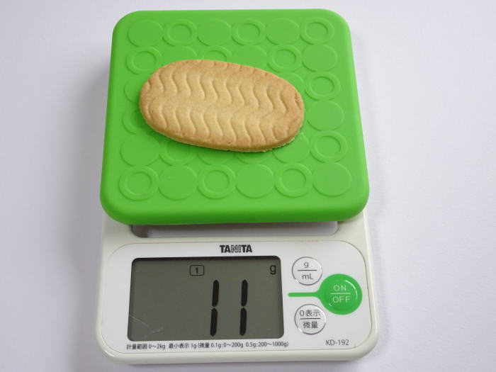 そこで1枚の重量を測ってみると11グラムでした。この5%なので1枚あたり0.55グラムの鬼ころしが入っているという計算ですね。
