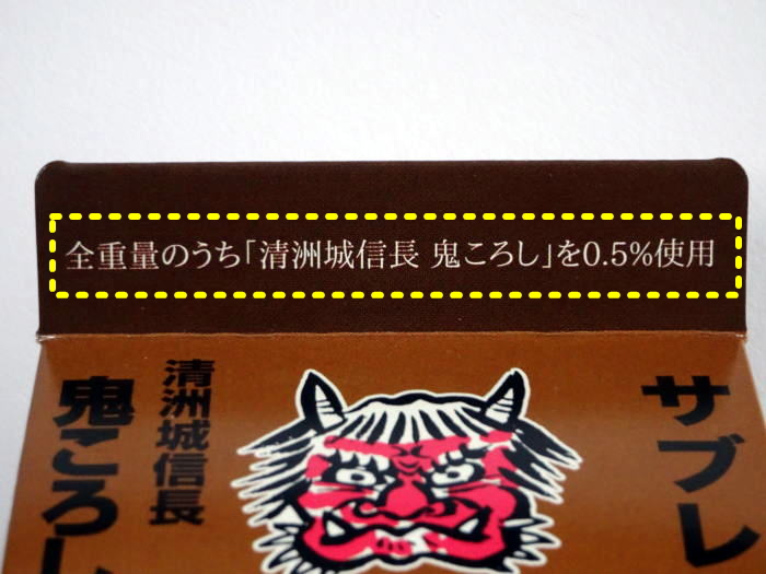 まず清洲城がある清須市には、清洲桜醸造株式会社という日本酒の会社があるのですが、そこが作っているブランドに清洲城信長鬼ころしというものがあります。それをサブレの中に入れたのが、この鬼殺しサブレなんです。お値段は810円(税込み)