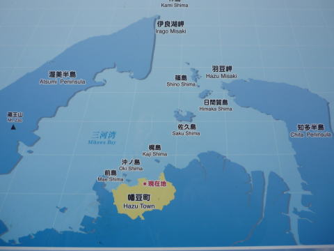 そしてもうひとつ本丸からチェックしておきたいのが南側の景色です。海が広がっていますね。現地案内看板を見てみると、寺部城は三河湾に面している事がよくわかります。また小笠原氏は水軍を持っていたので、水軍の調練(訓練)なども三河湾で行っていたのでしょう。