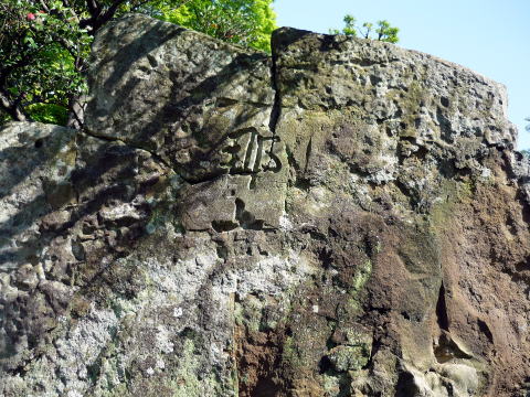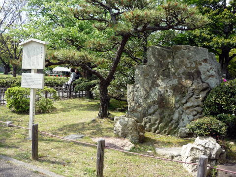 石碑を見てみると文字が途中で消えています。これは昭和二十年(1945)の空襲で文字が消し飛んだのでこの状態なのです。かつては那古野城址と刻んであったのでしょうか?