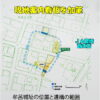 看板が建つ場所をよく見ると水路があり、これがかつての川の名残なのかな?と思います。するとそこに架かっていたのが槍合橋なのでしょう。今では橋は無く、水路も暗渠みたいに地下に埋まっています。