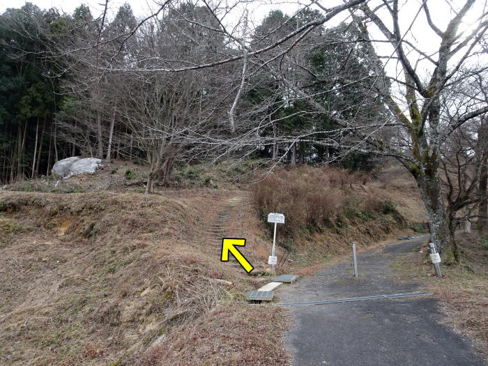 そのまんま公園 駐車場から山に向かうと左手に道があるので、そこから登ります。