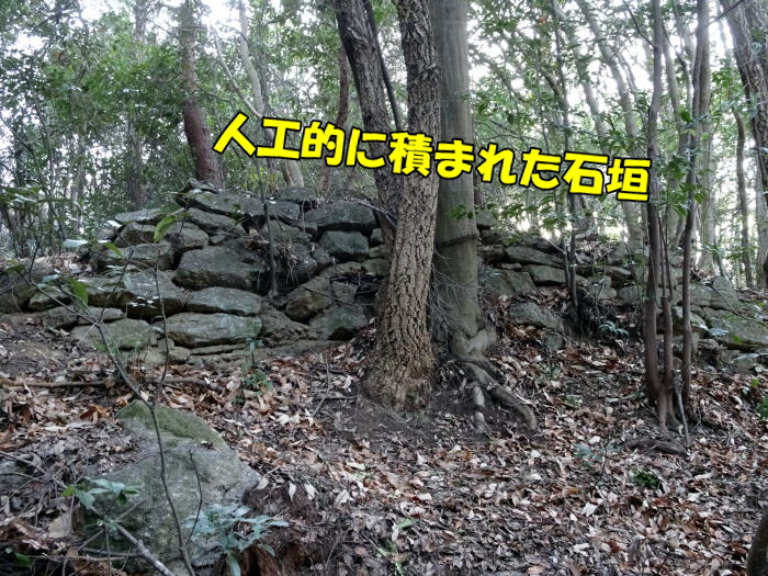 城内にはいろんな場所に当時のものと考えられる石垣が残っています。工法は自然石をパズルみたいに組み合わせた野面積み(のづらづみ)。巨石が多い城なので石材は現地調達なおでしょう。