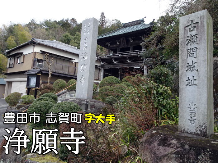 豊田市志賀町に残る古瀬間城址は、長沢松平氏のひとち松平宗忠が築いた城といわれています。一方で足助鈴木氏の城と構造が似ているので、鈴木氏の築城説もあります。浄願寺の裏山が古瀬間城址です。