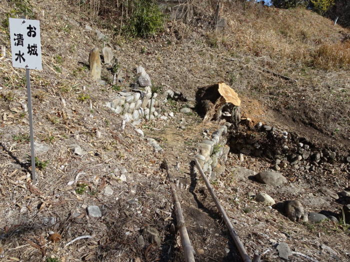 ↑お城清水。湧き水ですね。城があった時代からのものとなると、貴重な水源、つまり水の手です。ここから池に向かって水が流れる様になっています。